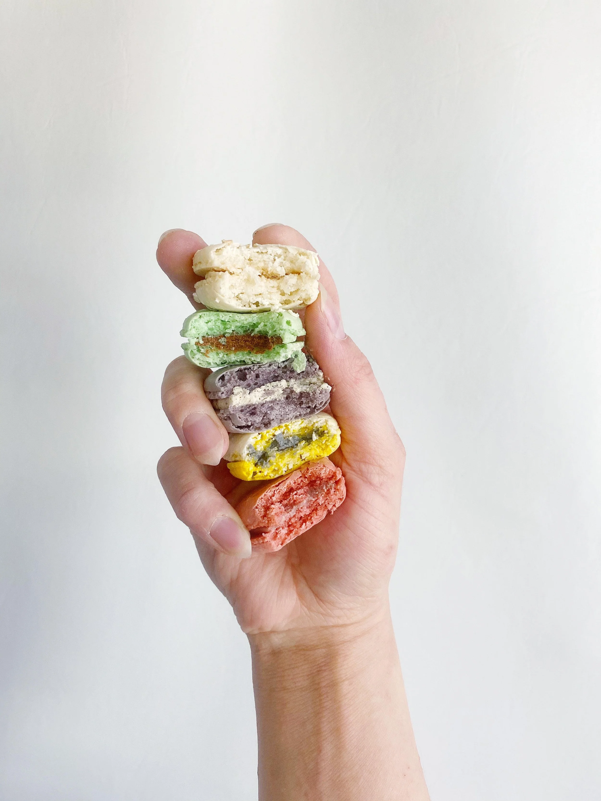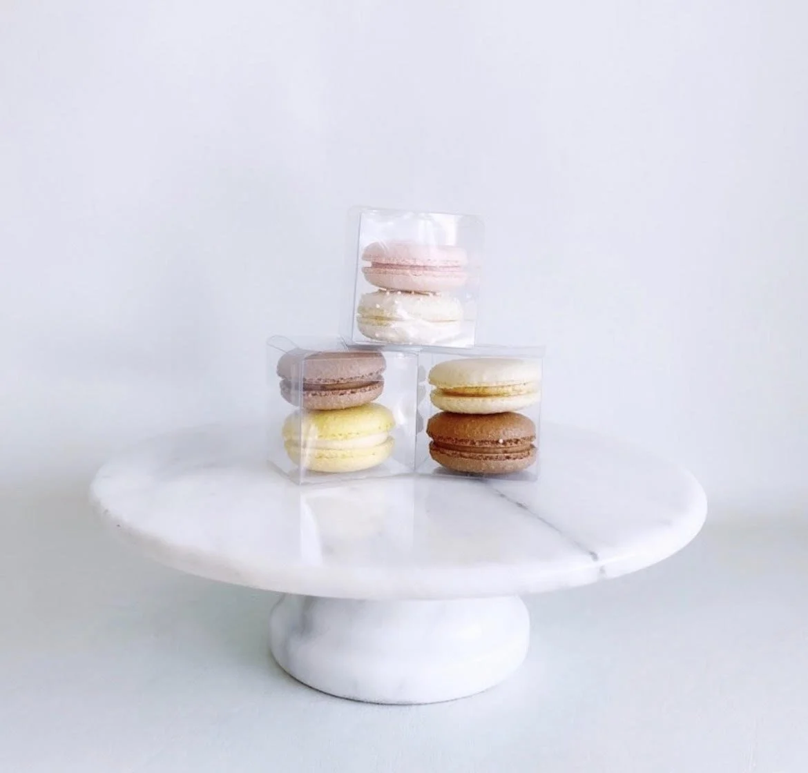 Two macarons of your choice in a small acrylic box. Minimum order 24.